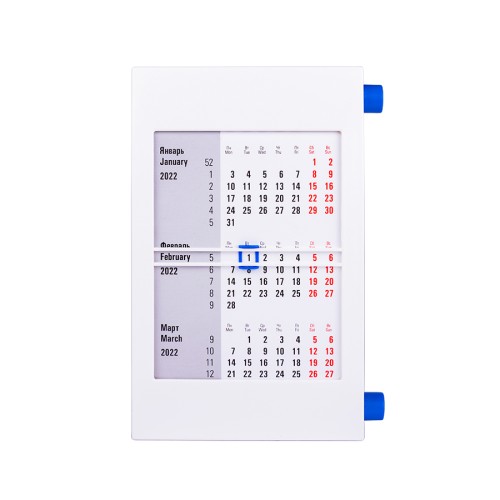Календарь настольный на 2 года, белый с синим, 18х11 см, пластик, тампопечать, шелкография