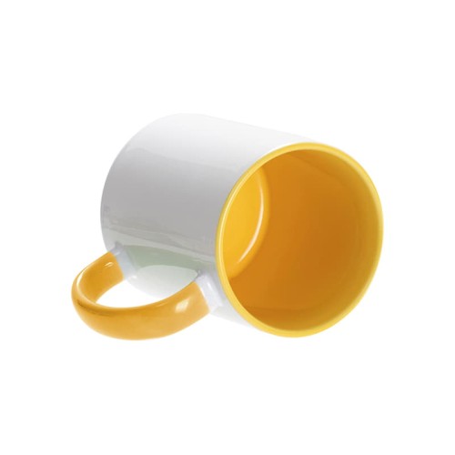 Кружка для сублимации, 330 мл, d=82 мм, стандарт А, белая, желтая внутри, желтая ручка