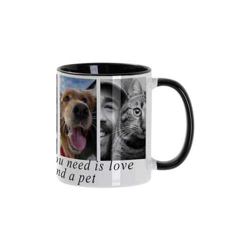 Кружка для сублимации, 330 мл, d=82 мм, стандарт А, белая, черная внутри, черная ручка