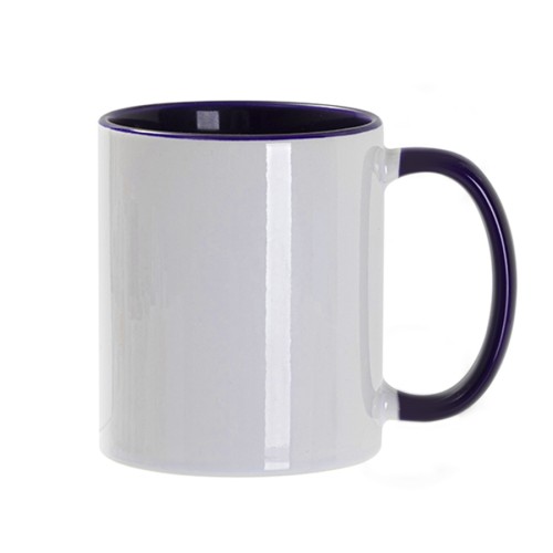 Кружка для сублимации, 330 мл, d=82 мм, стандарт А, белая, синяя внутри, синяя ручка