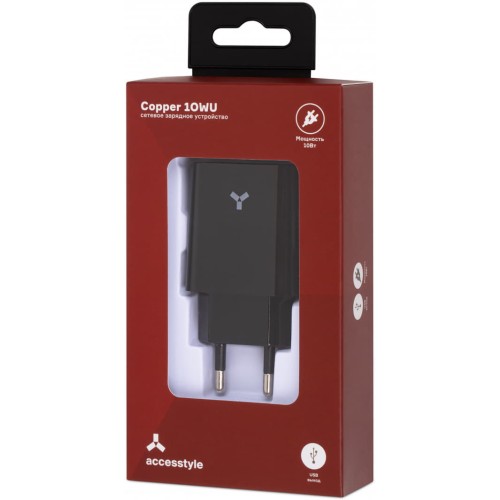 Accesstyle Copper 10WU - компактное зарядное устройство с одним выходом USB. Зарядное устройство весит всего 42 грамма и не занимает много места. Можно выбрать подходящий цвет зарядки — черный или белый.Выходящее напряжение, сила тока - 5V / 2.1AВыходные порты - USBРазмеры без упаковки - 82.5 * 43 * 27ммВес без упаковки - 42 гВремя поставки по заказной программе 5-7 рабочих дней