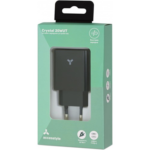 Accesstyle Crystal 20WUT — функциональное зарядное устройство с USB и TYPE-C и функцией быстрой зарядки. Единое зарядное устройство для разных гаджетов — это удобно. С Crystal 20WUT вы можете заряжать что угодно, если это подключается через USB или TYPE-C. Для разъема TYPE-C доступна быстрая зарядка на 20 Ватт, а обычный USB поддерживает 18 Ватт.Выходные порты - USB, TYPE-CВыходящее напряжение, сила тока - Type-C: DC 5V3A, 9V2.25A, 12V1.67A(20Вт), USB- A: DC 5V3A, 9V2A, 12V1.5A (18Вт)Наличие быстрой зарядки - DC 5V3A,9V2A,12V1.5A (18W)Размеры без упаковки - 82.5 * 45 * 26ммВес без упаковки - 42 гВремя поставки по заказной программе 5-7 рабочих дней
