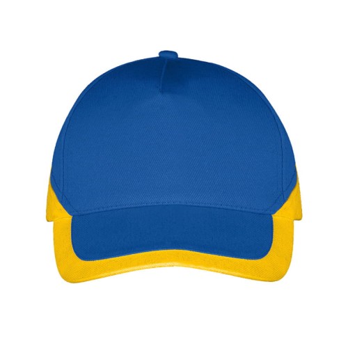 Бейсболка "BOOSTER", 5 клиньев, металлическая застежка, ярко-синий/желтый, 100% хлопок, 260г/м2