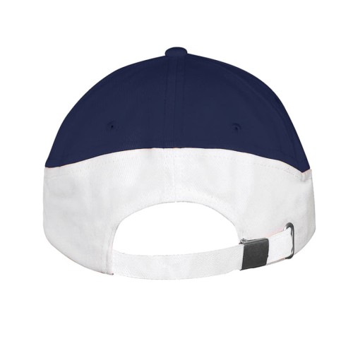 Двухцветная бейсболка BOOSTER без лобового шва с жестким козырьком "сэндвич". 4,вышитых, люверса, регулируемая металлическая застежка. Цвет (тёмно-синий), близкий к PANTONE 539C58,5 см - средний размер, с помощью застёжки его можно увеличить или уменьшить до необходимого.