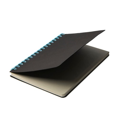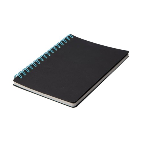 Блокнот на двойной пружине HELIX MINI бренда Y-Note - это универсальное рекламное решение для вашего бизнеса.Обложки блокнотов HELIX MINI изготовлены из черного высококачественного картона, плотностью 400 + 400 г. На оборотной стороне обложки тиснение бренда.Двойная пружина голубого цвета будет идеально сочетаться с вашим фирменным логотипом.Блок из 50 листов плотностью 70 г в клетку.