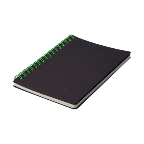 Блокнот на двойной пружине HELIX MINI бренда Y-Note - это универсальное рекламное решение для вашего бизнеса.Обложки блокнотов HELIX MINI изготовлены из черного высококачественного картона, плотностью 400 + 400 г. На оборотной стороне обложки тиснение бренда.Двойная пружина зеленого ,цвета будет идеально сочетаться с вашим фирменным логотипом.Блок из 50 листов плотностью 70 г в клетку.