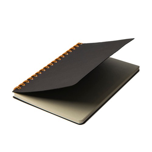 Блокнот на двойной пружине HELIX MINI бренда Y-Note - это универсальное рекламное решение для вашего бизнеса.Обложки блокнотов HELIX MINI изготовлены из черного высококачественного картона, плотностью 400 + 400 г. На оборотной стороне обложки тиснение бренда.Двойная пружина оранжевого цвета будет идеально сочетаться с вашим фирменным логотипом.Блок из 50 листов плотностью 70 г в клетку.