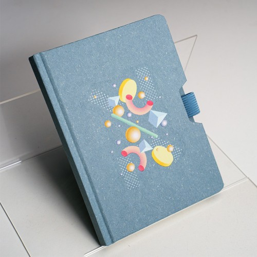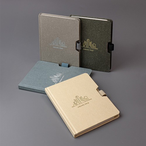 Блокнот,MEMO, размер 130*170 мм, обложка жесткая из переработанного натурального волокна, 80 листов из переработанной кремовой бумаги, ,70 г/м2. Резинка-пенхолдер. Ручка в комплект не входит