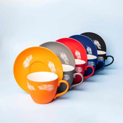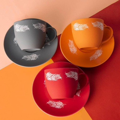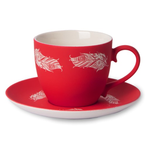 Чайная пара из фарфора с прорезиненным покрытием soft-touchЧашка классической формы и удобное глубокое блюдцеЦвет близкий к,Pantone 200CНе рекомендуется мыть в посудомоечной машине