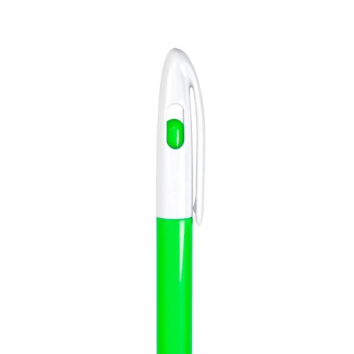 Ручка обтекаемой формы с поворотным механизмом и оригинальной деталью: когда стержень в нерабочем положении, цветная внутренняя кнопка полностью закрывает окошко в верхней части ручки, а когда стержень выдвинут - окошко наполовину открыто. Классическое сочетание глянцевого белого и цветного пластика создают отличный фон для логотипа или рекламного сообщения. • Цвет, близкий к Pantone 2421C. • Корпус и клип из ABS пластика. • Поворотный механизм подачи стержня. • Пулевидный пишущий узел 1.0 мм. • Длина линии письма 600-800 м. • Цвет чернил синий. • Угол поворота корпуса 120°. • Сменный стержень X-20, длина 121 мм. Чтобы заменить стержень, нужно с небольшим усилием разъединить верхнюю и нижнюю части ручки, а после замены - соединить вместе до двух щелчков.