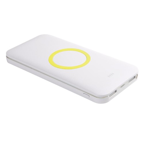 Универсальный аккумулятор с функцией беспроводной зарядки SATURN,белый с желтым,15х7,3х1,2см