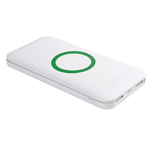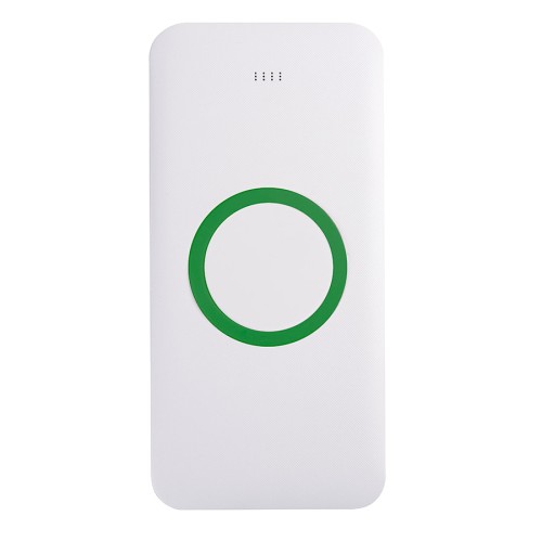 Универсальный аккумулятор с функцией беспроводной зарядки SATURN,белый с зеленым,15х7,3х1,2с