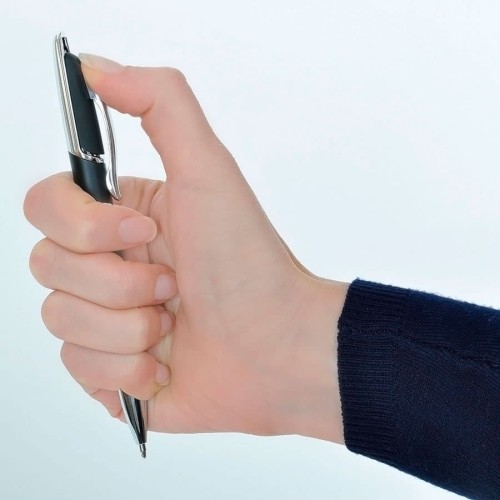 Эта модель ручки подойдет для тех, кто любит сначала записать основные мысли прежде, чем приступить к работе. Современный дизайн и необычный механизм подачи стержня привлекают внимание. Легкое и гладкое письмо не создает трудностей при работе с этим пишущим инструментом.• Pantone, близкий к,Black.• Металлический корпус и клип.,• Нажимной механизм подачи стержня.• Пулевидный пишущий узел 1.0 мм.• Шарик из вольфрама карбида.• Длина линии письма 1000 м.• Цвет чернил синий.• Сменный стержень Parker Type.• Виды нанесения: лазерная гравировка, тампопечать.,