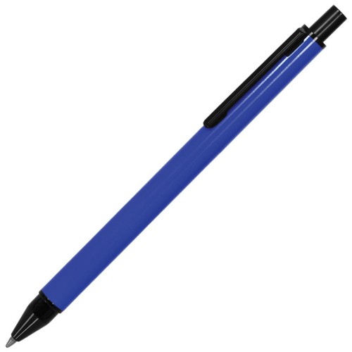 Яркая металлическая ручка простой формы - универсальный носитель рекламного сообщения. Цвет, близкий к Pantone 2748C. Стержень Plastic Parker Type, синий, толщина пишущего узла 1 мм
