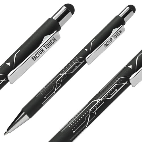 Ручка шариковая FACTOR TOUCH со стилусом, черный/серебро, металл, пластик, софт-покрытие