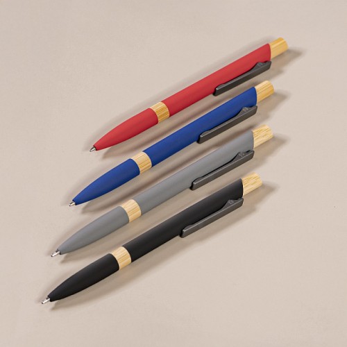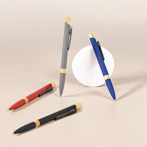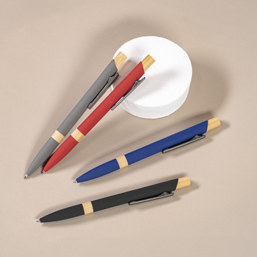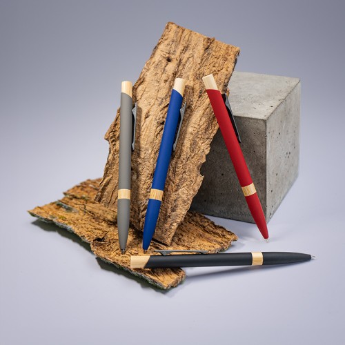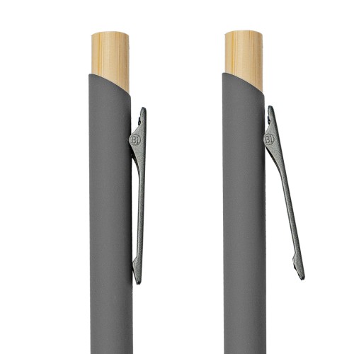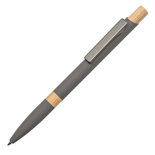 Ручка шариковая FRESCO серый/темно-серый, металл, пластик, ,бамбук, софт-покрытие