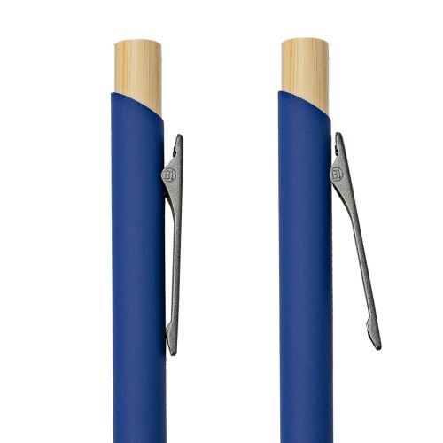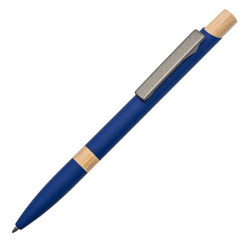 Ручка шариковая FRESCO синий/темно-серый, металл, пластик, ,бамбук, софт-покрытие