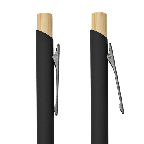 Ручка шариковая FRESCO черный/темно-серый, металл, пластик, ,бамбук, софт-покрытие