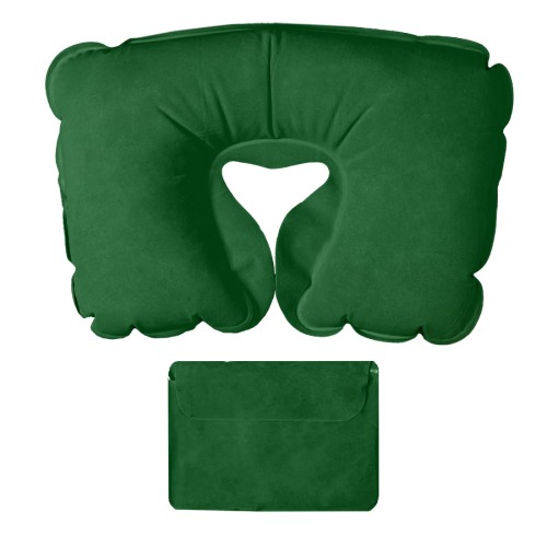 Подушка надувная дорожная в футляре, зеленый, 43,5х27,5 см, твил, шелкография