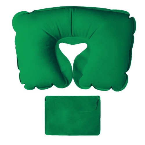Подушка надувная дорожная WAY в футляре, зеленый, 43,5х27,5 см, твил
