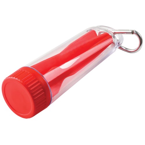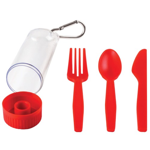 Набор "Pocket":ложка,вилка,нож в футляре с карабином, красный, 4,2х15см,пластик