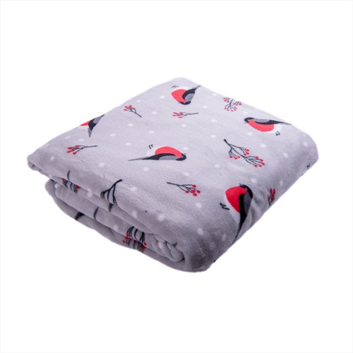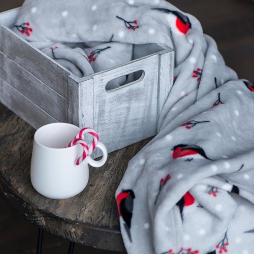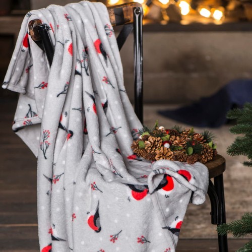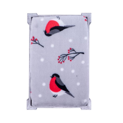 Плед новогодний "Снегири" в подарочной коробке, серый с красным, 130х150 см, полиэстер, 220 гр/м2