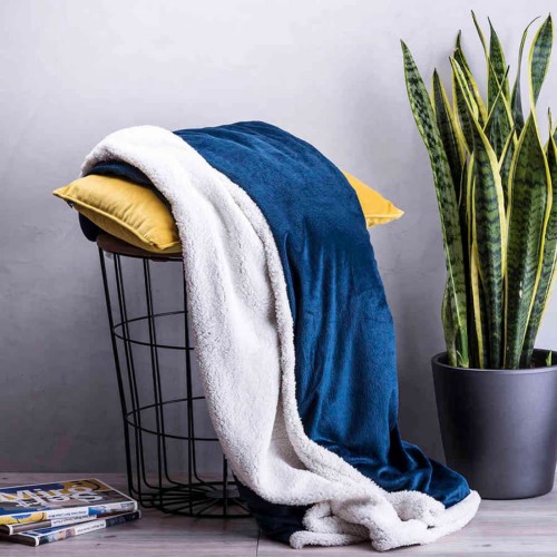 Плед LERTEN, темно-синий,125 x 160 x см, 770 гр., коралловый флис / шерпа
