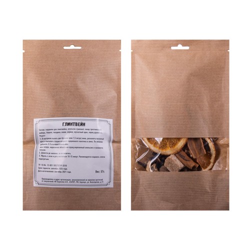 Состав: кардамон для глинтвейна, апельсин сушеный, сахар тростниковый, имбирь, бадьян, гвоздика, изюм, корица, мускатный орех, перец душистый. Вкусовые качества:,вкус пряный, с тонами апельсина, оттенками корицы и гвоздики. Послевкусие длительное, сладкое. Примечание:,рекомендуется подавать слегка подогретым.