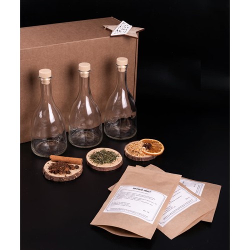 Сам Себе Сомелье - коллекция, сборов трав и специй для приготовления уникальных напитков. В состав набора арт. 39476,,входят:,- стружка-,коробка подарочная арт. 34931,,размер 40 х 25 х 15 см- три стеклянные, бутылки, объемом 0,5 литра- три полимерные пробки- три, сбора для приготовления ликеров. ,Мятный ликер - один из самых душистых алкогольных напитков. Домашний мятный ликер обладает неповторимый яркий аромат и мягкий вкус. Прекрасный вариант к десерту, чаю или кофе. Состав:,листья перечной мяты, сушеная цедра лимона. , Куантро,— французский крепкий прозрачный ликер,с ароматом корочек,сладких и горьких апельсинов и померанцев.,Пьют Куантро сильно охлажденным до 4-6°C маленькими глотками из классических ликерных рюмок. Хорошо сочетается с охлажденным апельсиновым и грейпфрутовым соками в любых пропорциях. Состав:,апельсин сублимированный, апельсин цедра, померанец корка, апельсин цветы, лайм дольки, грейпфрут цедра. Кофе,— самый популярный напиток на планете. Появление кофейного ликера было делом времени. В 1936 году Педро Домека разработал оригинальный рецепт и технологию, по которой собран наш набор. У кофейного ликера характерный насыщенный вкус, в котором раскрываются нотки ванили и карамели. Ликер сочетается с молоком, сливками, кофе и кокосовым молоком., Состав:,натуральный молотый кофе сорт «Арабика», ванилин, гвоздика, корица, бадьян. , , Каждый сбор рассчитан на 0,5 литра, готового продукта. , Хочешь сделать хорошо? ,Сделай это сам!Рецепт приготовления указан на упаковке. , ВНИМАНИЕ Набор поставляется в разобранном виде в количестве кратном трём (наборам).