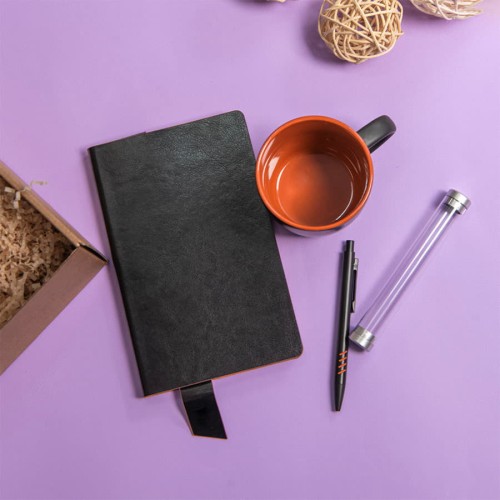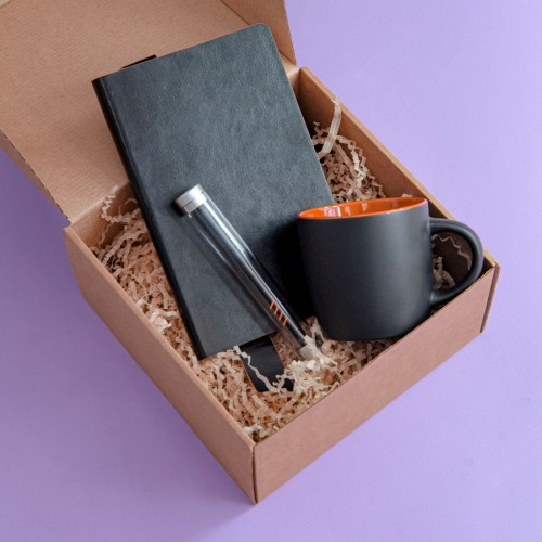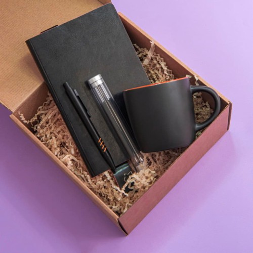 Набор подарочный DESKTOP: кружка, ежедневник, ручка, стружка, коробка, черный/оранжевый