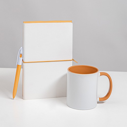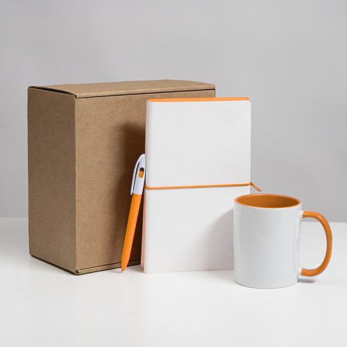 Набор подарочный WHITE VEIL: блокнот, ручка, кружка, белый/оранжевый