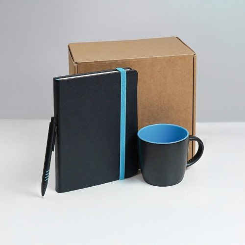 Набор подарочный HYPER: кружка, ежедневник, ручка, черный/голубой