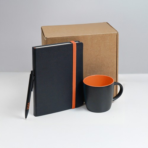 Набор подарочный HYPER: кружка, ежедневник, ручка, черный/оранжевый