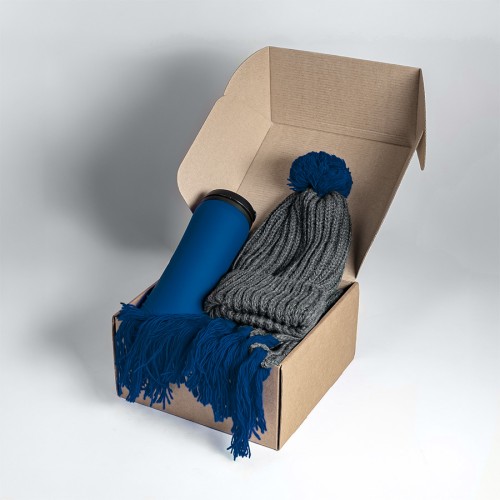 Набор подарочный COLD NIGHT: шарф и шапка, термокружка, синий