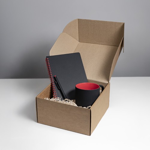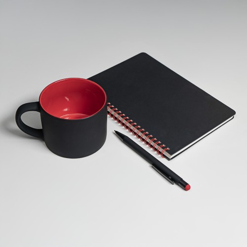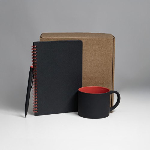 Набор подарочный FLAME: блокнот, ручка, кружка, черный/красный