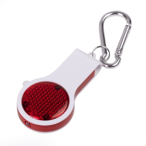 Брелок FLOYKIN со свистком, фонариком, светоотражателем на карабине, красный с белым, 3,7х6,7х1,5см