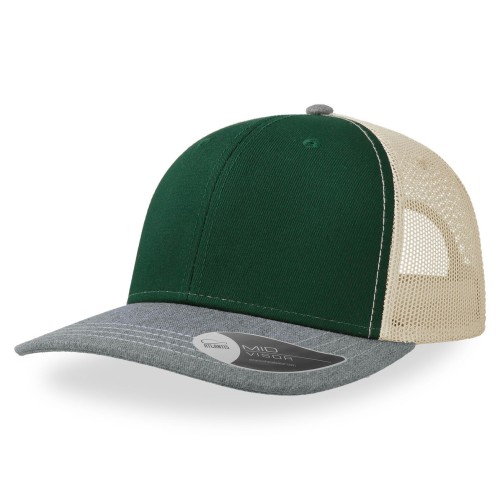 Бейсболка "SONIC", 6 клиньев, пласт. зас-ка, темно-зел, сер, беж, осн.ткань, 100% хлопок,280 г/м2