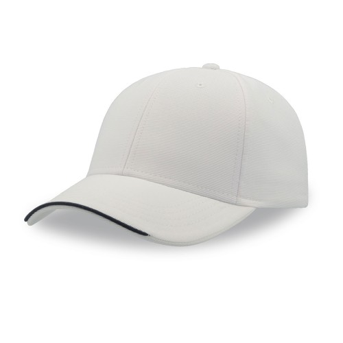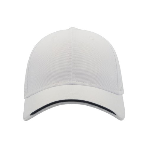 Плотная жаккардовая бейсболка ESTORIL-S с декоративным кантом по центру козырька.- 6 клиньев,- лобовой шов,- 6 вышивных люверсов для лучшей вентиляции,- изогнутый козырек с полной прострочкой,- контрастный кант в центральной части козырька,- застежка на липучке с пластиковой петлей.,Цвет близкий к Pantone White58,5 см - средний размер, с помощью застёжки его можно увеличить или уменьшить до необходимого.
