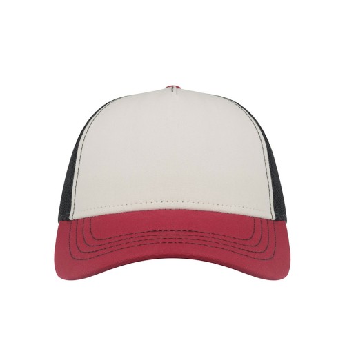 - 5 клиньев, - без лобового шва, - боковые и задние панели со вставкой из мягкой сетки, - изогнутый козырек, - пластиковая застежка. Лобная часть купола: цвет близкий к Pantone White,С, козырёк: цвет близкий к Pantone 188 C, сетка: цвет близкий к Pantone Black C58,5 см - средний размер, с помощью застёжки его можно увеличить или уменьшить до необходимого.,