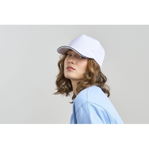 Бейсболка RECY FIVE PIPING, 5 клиньев, застежка-липучка, жёлтый/белый, 100 % полиэстер, 220 г/м2
