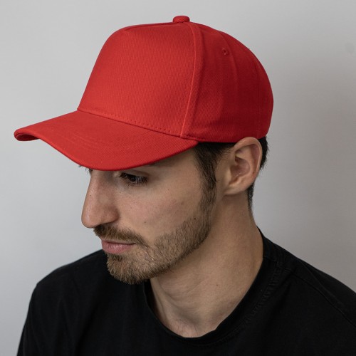 Бейсболка "Boston", 5 клиньев, металлическая застежка, ярко-красный, 100% хлопок,плотность 350 г/м2