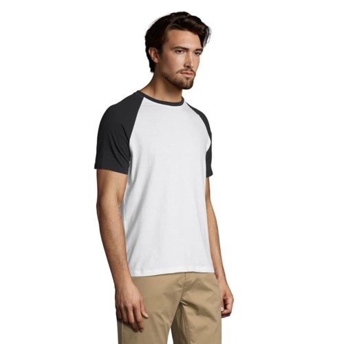 Футболка "Funky", белый с темно-синим_M, 100% х/б, 150 г/м2