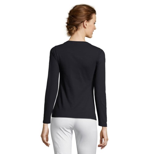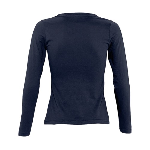 Женская футболка с круглым классическим вырезом и длинными рукавами. Модель с боковыми швами. Укрепляющая тесьма по вороту. Приталенный крой. Манжеты без резинки.