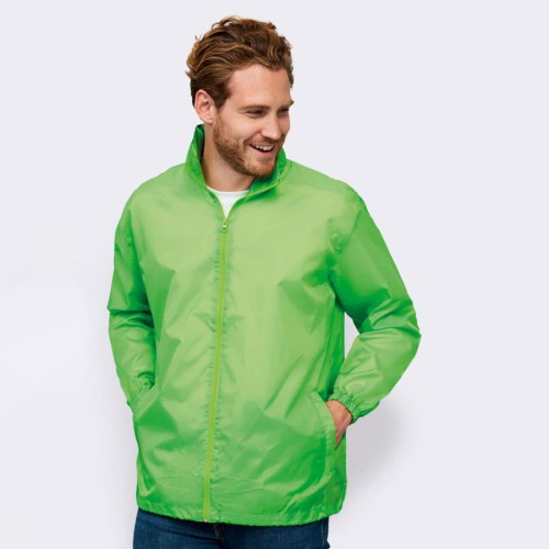 Легкая ветровка унисекс с облегченной пластиковой молнией.,Воротник с убирающимся капюшоном.,Эластичные манжеты на резинке., Цвет близкий к PANTONE 200С