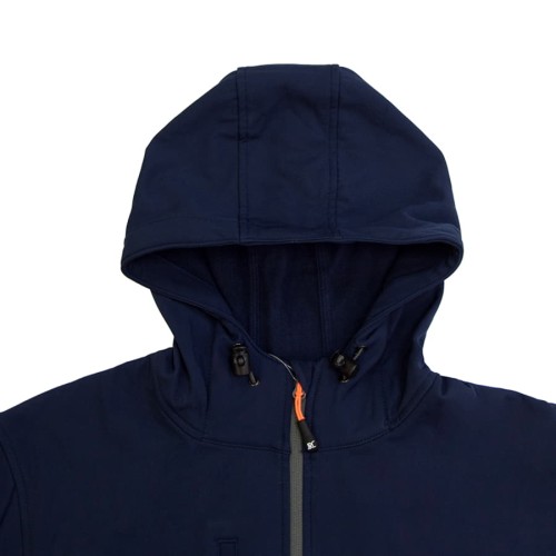 Основная ткань: цвет, близкий к Pantone 2380 C, подкладка: цвет, близкий к Pantone 289 C Ткань softshell. Водонепроницаемая и дышащая двухслойная куртка. Обратная облегченная пластиковая молния со съемным пуллером. Один нагрудный и два боковых кармана на молнии. Утягивающий шнурок по низу куртки. Регулируемые манжеты на липучке.
