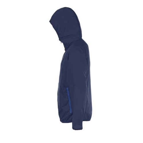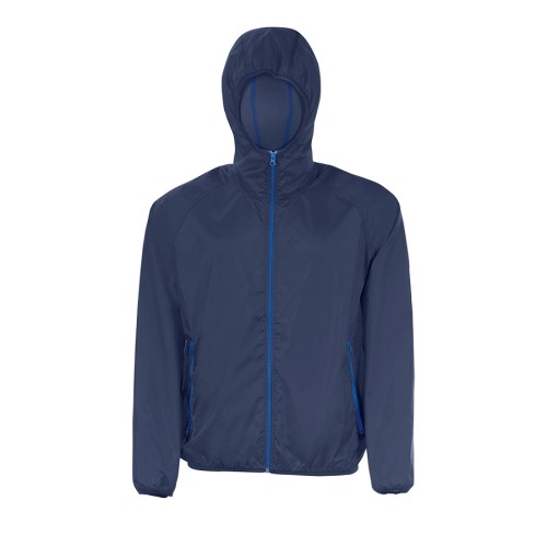 Легкая и компактная ветровка унисекс SHORE из водоотталкивающего и ветрозащитного материала. Два боковых кармана на молнии. Рукава реглан. Манжеты, капюшон и низ ветровки на эластичной тесьме. Молнии ветровки контрастного цвета. Складывается ветровка в свой карман на молнии. Цвет близкий к PANTONE 296C