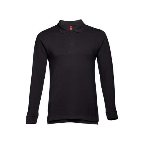 Рубашка-поло мужская BERN, д/р, чёрный, S, 100% хлопок, плотность 210 г/м2