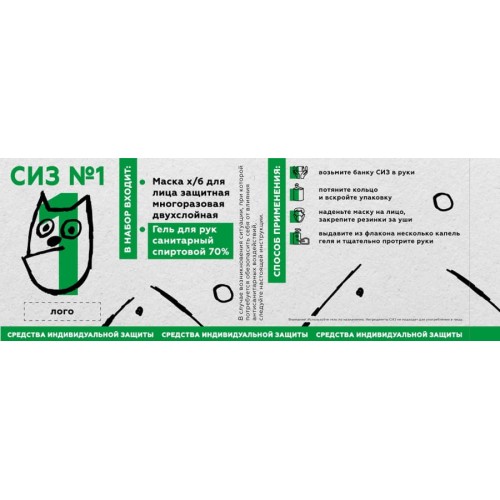 Универсальный комплект защиты на случай угроз здоровью и жизнедеятельности человека. Уникальный продукт! Жестяная запечатанная банка, в которой находятся самые нужные для защиты изделия. Все герметично запечатано и может храниться годами! А значит актуальность подарка будет сохраняться всегда. Набор № 1 состоит из следующих компонетнтов: 1),Защитная х/б маска многоразового пользования. Сшита качественно и добротно из 2 слоев ткани. Имеет самозатягивающиеся резинки для крепления за уши,и шов посередине, который ,повторяет форму лица для более качественной фиксации и защиты. На маску возможно нанесение в 1 цвет. Цвет маски - черный 2) Антисептическая жидкость на основе этанола, массовой долей 75%. Предназначен для уничтожения вирусов и бактерий на поверхности рук и лица, для обеззараживания телефона и других предметов обихода. Упаковка – пластиковый пузырек емкостью 50 мл с крышкой.,Нанесение на флакон -,цветная наклейка. Стандарный готовый набор поставляется со склада в запечатанном виде, без нанесения на компонентах и без этикетки. Для готовых комплектов, поставляемых со склада,можно заказать полиграфическую этикетку для банки, нанесение на ингредиентах в этом случае невозможно. Для заказа комплектов с нанесением на ингредиенты (маска, флакон с антисептической жидкостью) просьба обращаться к мнеджерам продаж. В этом случаае компоненты набора предварительно,персонализируются, после чего происходит закатка банки и оклейка этикеткой.