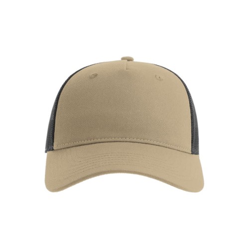 Бейсболка ZION 5 клиньев,сетка,пласт.застежка, хаки, черн., 100 % переработанный полиэстер, 200 г/м2