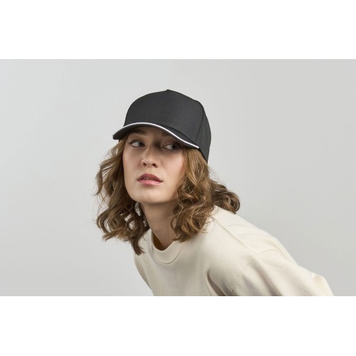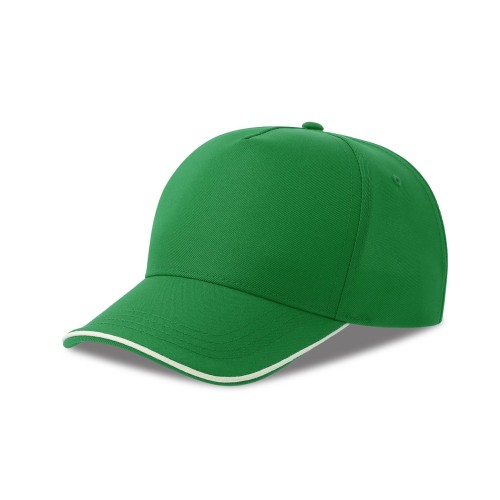 Бейсболка RECY FIVE PIPING, 5 клиньев, застежка-липучка, зелёный/белый, 100% полиэстер, 220 г/м2